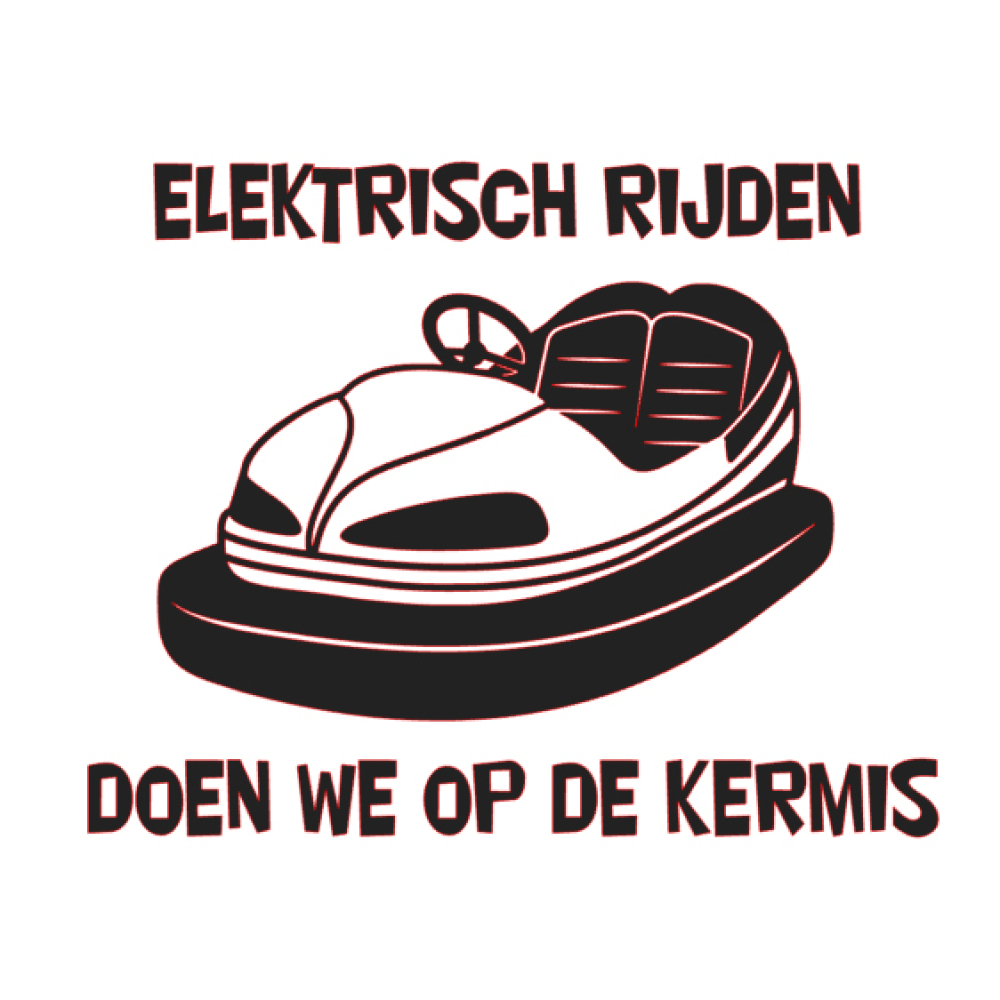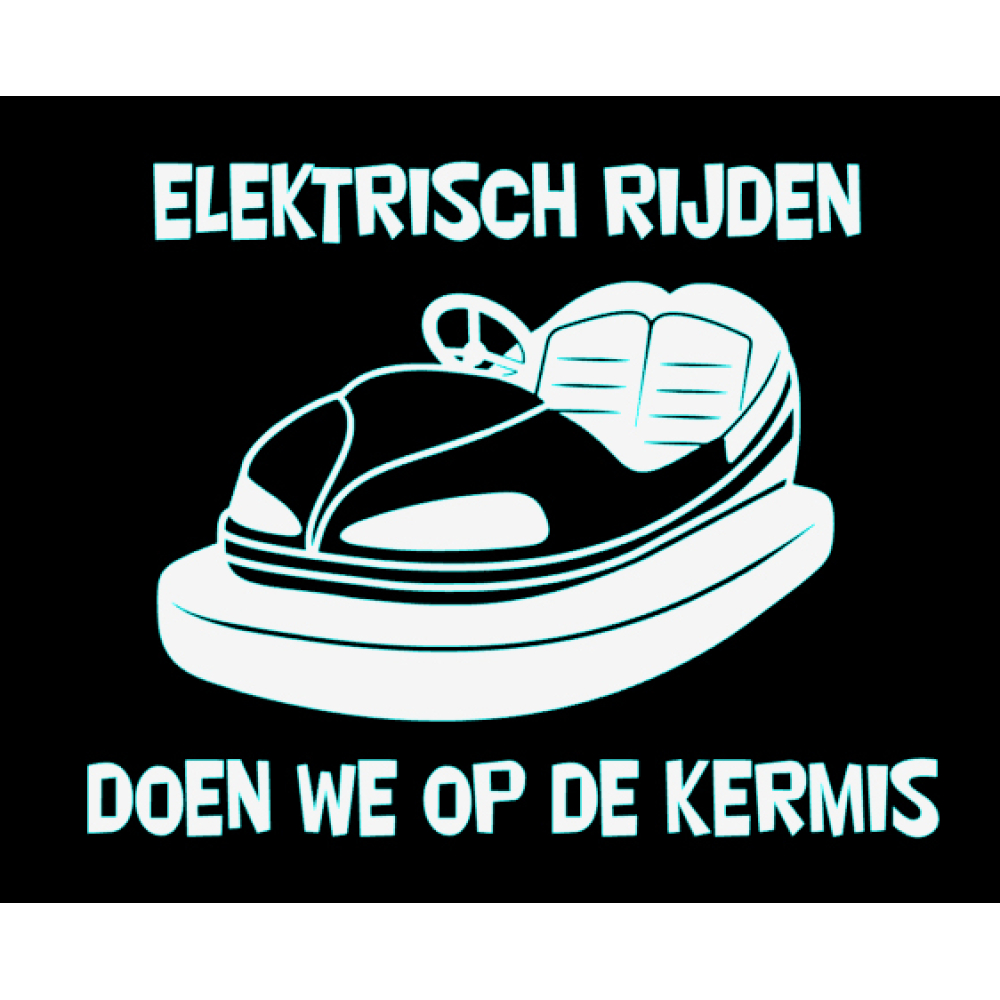 De Sticker,,Elektrisch rijden doen we op de kermis ,, is gemaakt van hoogwaardig sticker materiaal, kleur echt, watervast en uv Bestendig.